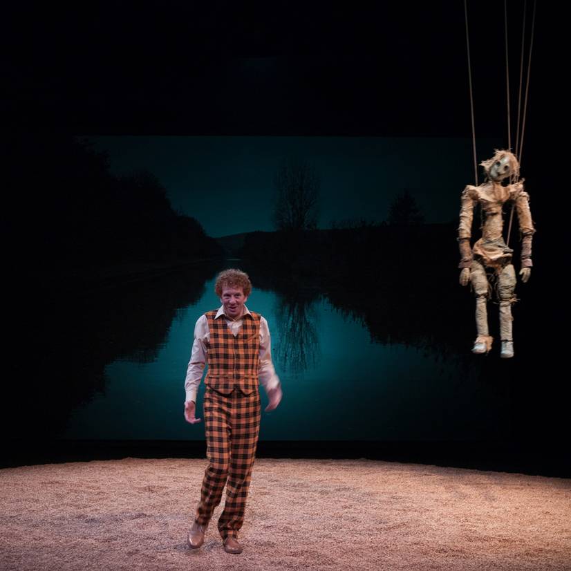 Si la rivière à portée d’écran sur la scène pouvait cligner de l’oeil et parler, nul doute qu’elle prendrait une sorte de forme féminine, captivée par la voix d’un homme, capable de faire bruire aussi bien le soleil des forêts que le tremblement de terre des êtres qui la parcourent.