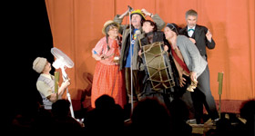 Dans le fond Yves CUSSET joue l’enfant qui ramasse les mots tels qu’il les entend, tels qu’il les attrape avant de leur faire subir le hic et le hoc du flou de la question, en grand téméraire un peu filou qui guette les spectateurs, prêts à mordre à l’hameçon.