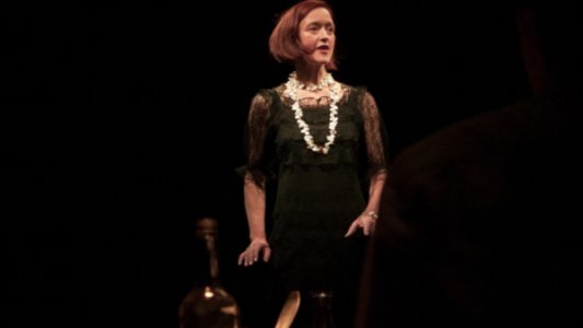 Au théâtre tout est possible. Voici l’auteure américaine, Mary Frances Kennedy FISHER incarnée par Corine MIRET, qui apparaît telle une page soulevée par le vent au milieu de tables dispersées sur la scène où ont pris place les spectateurs conviés à un dîner.