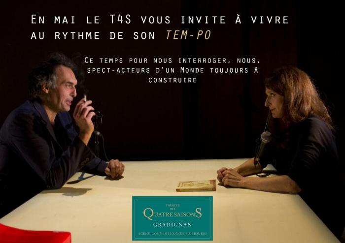 « Le théâtre est le dernier lieu où l’on peut réfléchir ensemble » nous dit Marie-Michèle DELPRAT à propos de ce TEM-PO particulièrement bienvenu au Théâtre des Quatre Saisons du 4 au 31 mai 2017 qui offre au public l’opportunité de découvrir à travers 6 spectacles, toutes disciplines confondues, le travail d’artistes engagés qui n’ont d’autre parti que leur art, leur imagination, leur courage pour ne pas fermer les yeux, les oreilles aux problèmes qui agitent le monde.