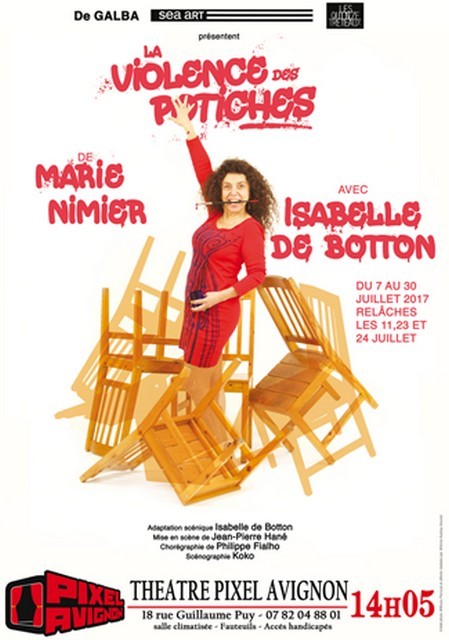 Quand une potichiste, alias Isabelle de BOTTON, découvre le livre de Marie NIMIER « la violence des potiches », un recueil de monologues féminins absolument décapants, son sang ne fait qu’un tour et la voilà qui entend des voix ou qu’elle se trouve submergée par des voix qu’elle ne peut plus contenir, sinon en interpellant l’écrivaine qu’elle accuse de lui avoir volé sa vie, car elle se reconnaît trop bien dans la galerie de ses portraits.
