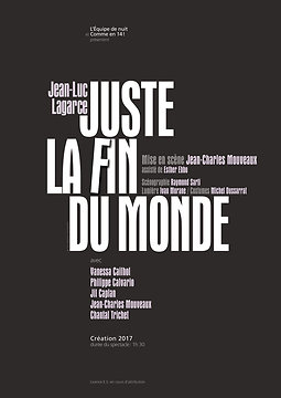 JUSTE LA FIN DU MONDE de Jean-Luc Lagarce mise en scène Jean-Charles Mouveaux au STUDIO HEBERT0T – 78 Bis Bd des Batignolles 75017 PARIS – Du 26 AVRIL AU 30 JUIN 2018 du jeudi au samedi à 21 Heures –