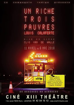 UN RICHE, TROIS PAUVRES de Louis CALAFERTE – Mise en scène de Clio VAN DE WALLE – Au Cine13-Theatre-Paris – 1 Avenue Junot PARIS – du 11 AVRIL AU 6 MAI 2018 – RÉSERVATION : 01 42 54 15 12 – Mercredi et vendredi à 21 Heures, jeudi et samedi à 19 Heures – Dimanche à 18 Heures –