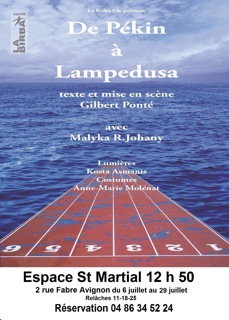 DE PEKIN A LAMPEDUSA de et mis en scène par Gilbert PONTE, avec Malyka R. Johany – FESTIVAL OFF AVIGNON 2018 – Présenté à L’Espace Saint Martial, 2, rue Henri Fabre, Avignon, du 6 au 29 juillet 2018 à 12h50 (relâches les 11, 18 et 25) (durée 1h10) –