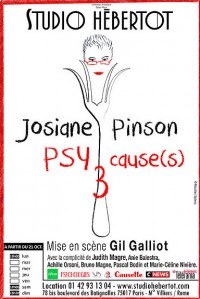 PSY CAUSE(S) 3 De et avec Josiane Pinson Mise en scène de Gil Galliot au Studio Hébertot Bd des Batignolles Paris du 21 Octobre 2018 au 10 Mars 2019 – Lundi 19 H – Samedi 17 H – Dimanche 19 H 30 –