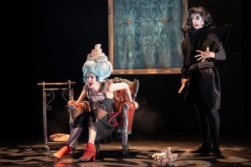 A ce jeu-là, le clown Sganarelle interprété par Teddy MELIS, excellent, se donne à fond. Dom Juan incarné par Simon LARVARON, quant à lui fait plutôt figure d’un Casanova paumé, qui ne comprend rien aux femmes, simples objets de désir et par ailleurs victime d’une mère abusive qui lui assène des coups de cravache en guise de semonces.