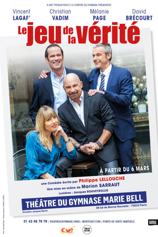 Dans le Jeu de la vérité de Philippe LELLOUCHE, mis en scène par Marion SARRAUT, il faut reconnaître que les mâles en prennent vraiment pour leur grade mais nous devinons et c’est l’intérêt de cette comédie que derrière les lourdes vannes qu’ils s’échangent, sourd une réelle pudeur, un certain effroi vis-à-vis de la femme idéalisée, inaccessible.