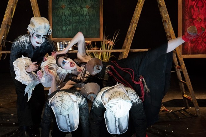 Le spectacle essentiellement visuel nous offre des tableaux sublimes avec une sobriété de décors indiscutable. Quelle magnifique scène que celle de la tempête où l’on voit juste des silhouettes accrochées à des planches qui se déhanchent sous les vagues.