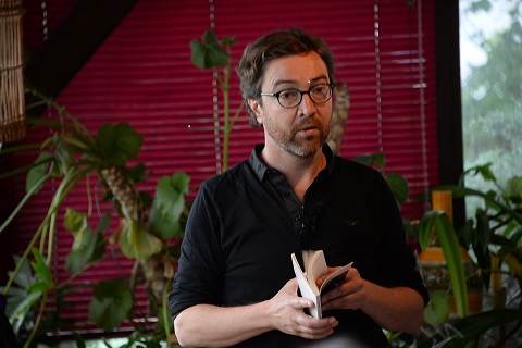 Lors de sa conférence récit, « L’arrosoir arrosé », chez Josette, Nicolas semble n’avoir qu’une seule boussole, un désir insatiable de remuer l’eau qui dort, le vrai et le faux aussi soudés que des frères siamois, ses propres souvenirs s’emmêlant volontiers à ses rêves quand le doute devient l’ouvroir d’une vérité parallèle hors champ, hors paramètres, qui déborde de nos fronts butés.