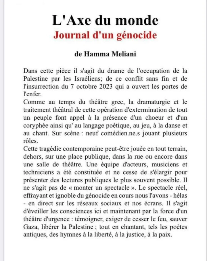 Avec Benjamin Arba, Merryl Beaudonnet, Charlotte Bigeard, Alain Bouzigues, Hélie Chomiac, Gaël Cottat, Rémi Couturier, Paul Delbreil, Charlie Fargialla, Laurence Gray, Tadrina Hocking, Frédéric Imberty, Damien Jouillerot, Blaise Le Boulanger, Claire-Lise Lecerf, Lydie Misiek, Christian Pélissier, Thibaud Pommier, Thomas Ronzeau, Charlotte Valensi